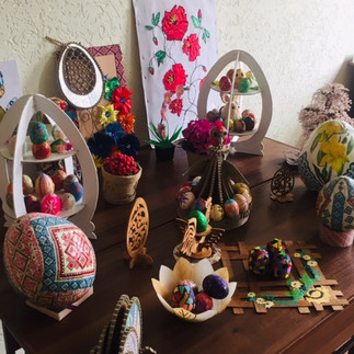 В навчальних лабораторіях обслуговуючої та технічної праці напередодні Великодня учні 5-9 класів разом з вчителями розгорнули тематичні виставки навчальних проектів. Милують око яскраві писаночки, пухнасті курчатка, кумедні кролики зо зібралися в оригінальні композиції.